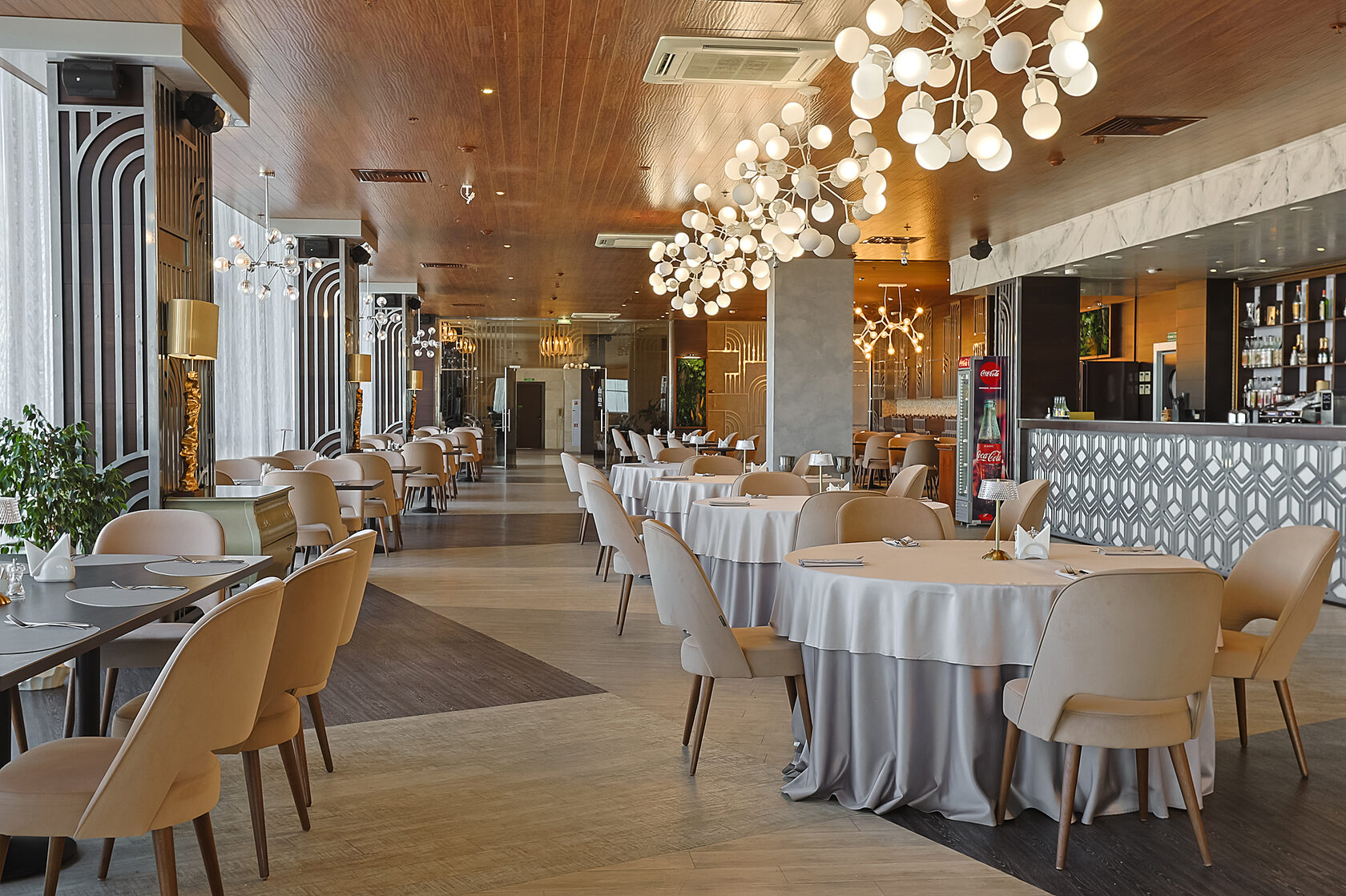 Ресторан E11even находится на 11-м этаже гранд-отеля «Ока» и открывает потрясающие виды на город.